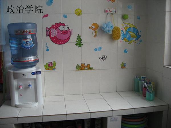 以“海之梦”为主题的寝室,构思巧妙,装饰精美,取得了本次比赛的一等奖。墙顶为整片的蓝色背景上点缀着彩色各样的鱼和星星,让这个寝室处于蓝色的海洋之下,蝴蝶结门帘、美人鱼小海豚的墙贴、粉色的气球与金色的阶梯,也为整体氛围增添了温馨与甜美。此外,该寝室还别出心裁的设计并完全通过手工制作出报刊箱、储物柜等,整个寝室显得井井有条。
