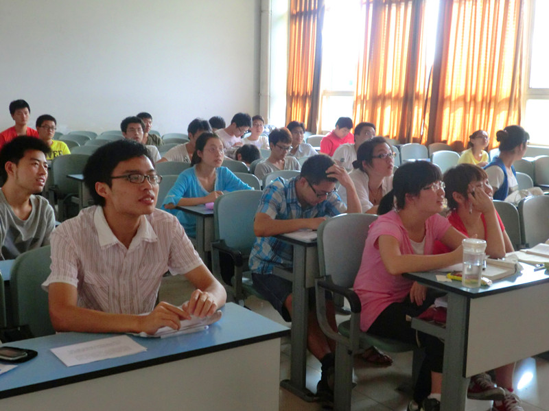 紧接着,各位同学相继走上讲台分享读书心得。每位同学都制作了简单却不失精美的PPT,一边展示一边做讲解。《传习录》、《大同书》、《贞观政要》、《封建论》、《政治学》、《理想国》、《社会契约论》、《利维坦》等经典著作的魅力吸引着在场所有同学的目光。徐涛同学着重谈了他对《大同书》中所包含的教育思想的理解;边金鑫同学、付国英同学重点分享了他们对《平凡的世界》中所蕴含的“苦难与坚强”的看法;陆栋健同学比较深入地谈了自己对自由思想的感悟;张廷广同学用诗歌朗诵的形式分享了自己的读书心得……一次次的精彩讲解和展示不断将现场的气氛推向高潮。台上同学认真讲解,台下同学也没闲着,他们除了忙于倾听和思考别人的发言外,还积极地用笔记录下台上同学思维的闪光点。王习明教授也不时地对同学们的发言做出评点,并阐述自己对一些思想的看法。