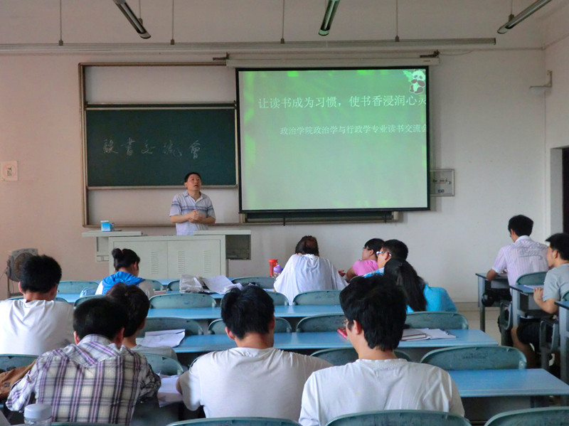 2011年6月17日下午5:30——7:30,西南交通大学政治学院政治学与行政学专业读书交流会在X2225教室成功开展。此次读书交流会由会长张廷广同学主持,政治学院政治学系主任王习明教授出席并做了精彩发言和点评。