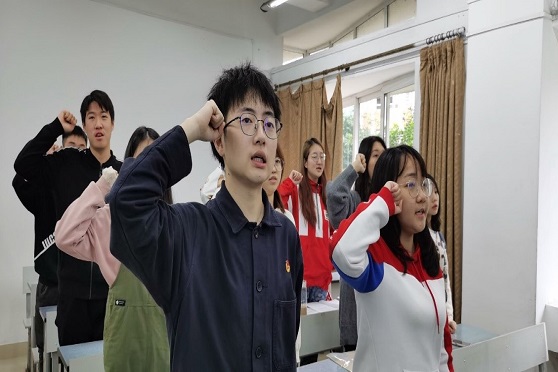 紧接着,2020-02班班长龙虹霖介绍第三部分“把握新机遇 建功新时代”,号召同学们坚定理想信念,与时代共呼吸、站稳人民立场,与社会共命运、练就过硬本领,与榜样共进步、投身强国伟业,与祖国共绽放,同亿万人民一道,在矢志奋斗中谱写新时代的青春之歌。