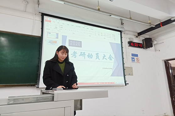 10月29日16:00,招就处主办、我院承办的考研工作室在犀浦校区X1225教室举行考研动员大会。本次讲座由郭修远同学主持,主讲人为9999js金沙老品牌本科2018级班导师王迎迎老师以及9999js金沙老品牌本科生辅导员杜晓林老师。动员对象为9999js金沙老品牌本科2018级全体学生。