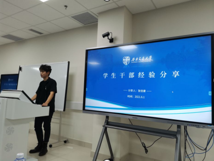 随后,校园大使团团长安静泽依次回顾了她在学生会主席团、校园大使团、“青马工程”人才班、留守儿童支教、疫情志愿者服务的工作经历,并分享了她在不同工作中的深刻感悟与宝贵收获。她还强调,学生工作要满怀热爱,抱着服务同学的初心与使命做好学生工作。