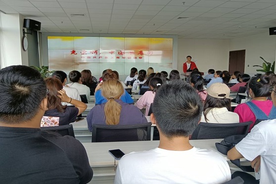 首先,全体同学奏唱了《光荣啊,中国共青团》,在激昂的歌声中开始本次团课活动。随后,由周怀宸宣读《团团致四川学子的一封信》,并带领同学们观看“请党放心,强国有我”共青团员和少先队员代表集体致献词的视频,明确大家作为青年的责任。接着,全体同学学习团省委、省青联、省学联、省少工委共同发起的践行“请党放心,强国有我”庄严承诺《倡议书》。最后,由团支书带领同学们学习生命安全教育系列主题海报,以加深大家的安全意识,丰富安全知识。