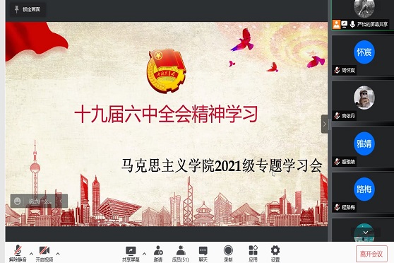 2020级硕士团支部通过视频方式着重学习了《中共中央关于党的百年奋斗重大成就和历史经验的决议》。《决议》是在我们党成立100周年的重要历史时刻,在“两个一百年”奋斗目标的历史交汇点上,制定的一份光辉的马克思主义纲领性文献。随后,曹刚、陈锐峰等同学围绕《决议》交流了个人学习心得。他们一致认为,《决议》是在重大历史关头制定的具有重大历史意义的马克思主义政党文献,它不仅总结了中国共产党团结带领中国人民争取民族解放、国家富强的百年奋斗经验,更为新时代中国特色社会主义事业指明了前进方向。