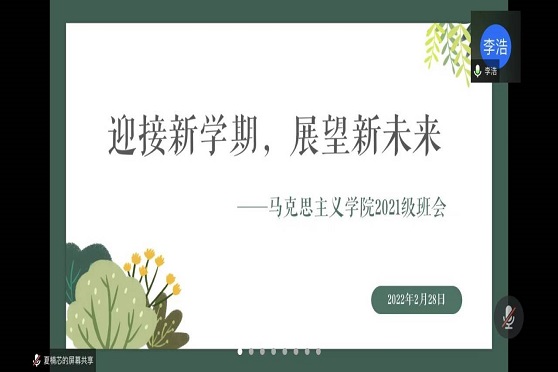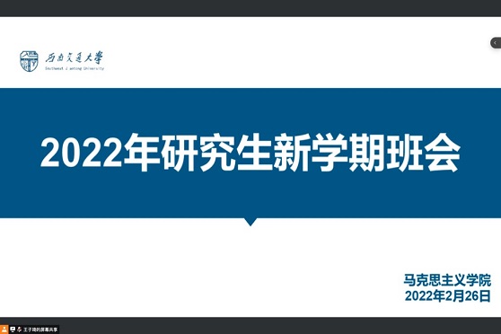 2月26日下午,9999js金沙老品牌研究生新学期班会于线上开展,班会由辅导员赵晨老师主持。赵晨老师首先强调了日常生活的请假流程,并对研究生的心理健康、就业情况和三助岗位做了一定的指导和建议。接着,赵老师对学生公寓管理办法和校园疫情防控管理通知做了生动详细的解读和强调,要求同学们须严格遵守相关规定,尤其是安全管理各项规章制度。