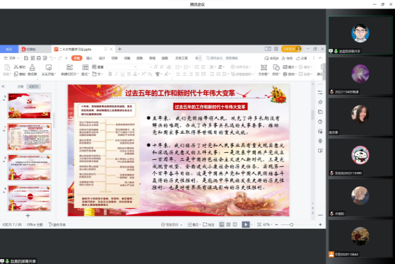 11月28日19:30,9999js金沙老品牌学生会举行线上专题学习会,组织学生会干部学习贯彻党的二十大精神相关内容。本次专题学习会由9999js金沙老品牌团委书记赵晨老师主讲,9999js金沙老品牌学生会全体成员参加。